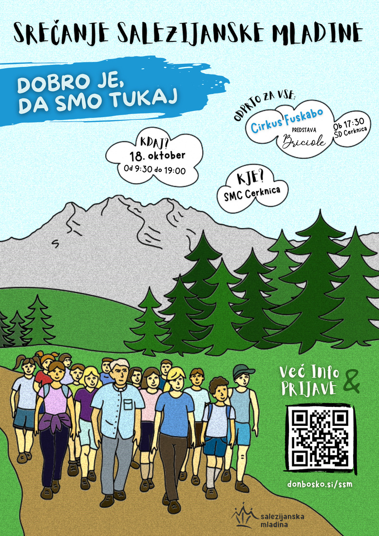 Letošnje srečanje salezijanske mladine bo potekalo v soboto 18. oktobra 2025 v Salezijanskem mladinskem centru Cerknica. Srečanje nosi naslov “Dobro je, da smo tukaj”