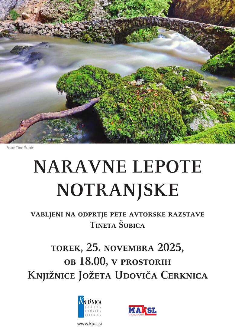 Vabljeni na odprtje pete avtorske razstave fotografa Tineta Šubica, ki bo v torek, 25. novembra 2025, ob 18.00 v Knjižnici Jožeta Udoviča Cerknica.
