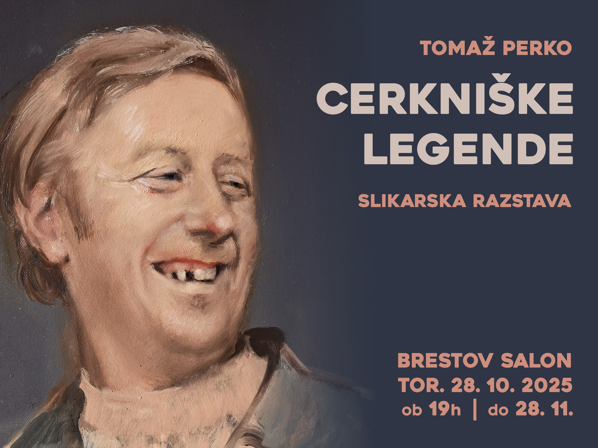 V Brestovem salonu bo od 28. oktobra do 28. novembra 2025 na ogled slikarska razstava Tomaža Perka z naslovom Cerkniške legende.