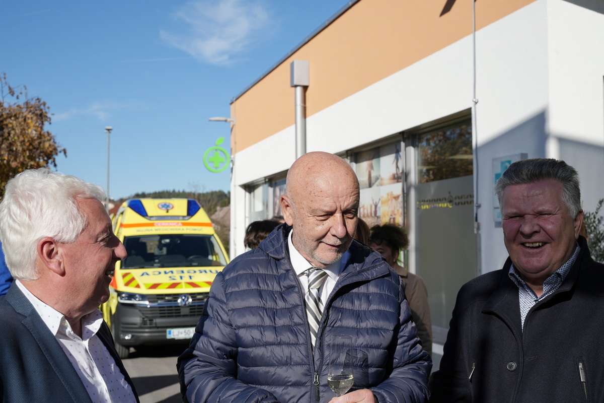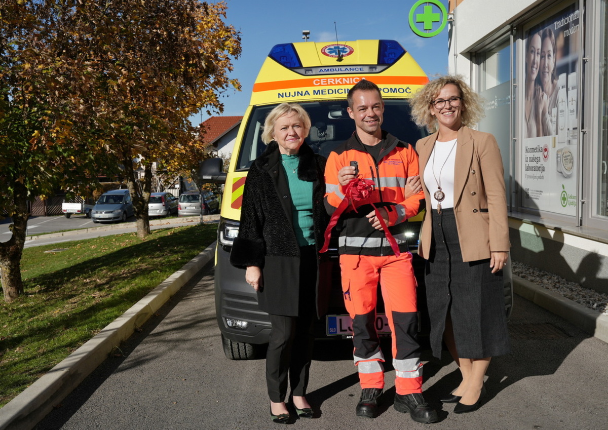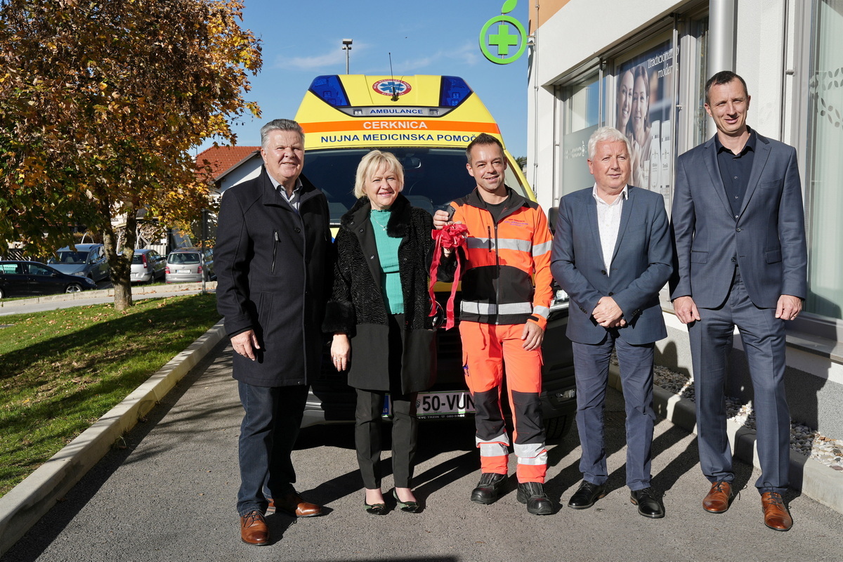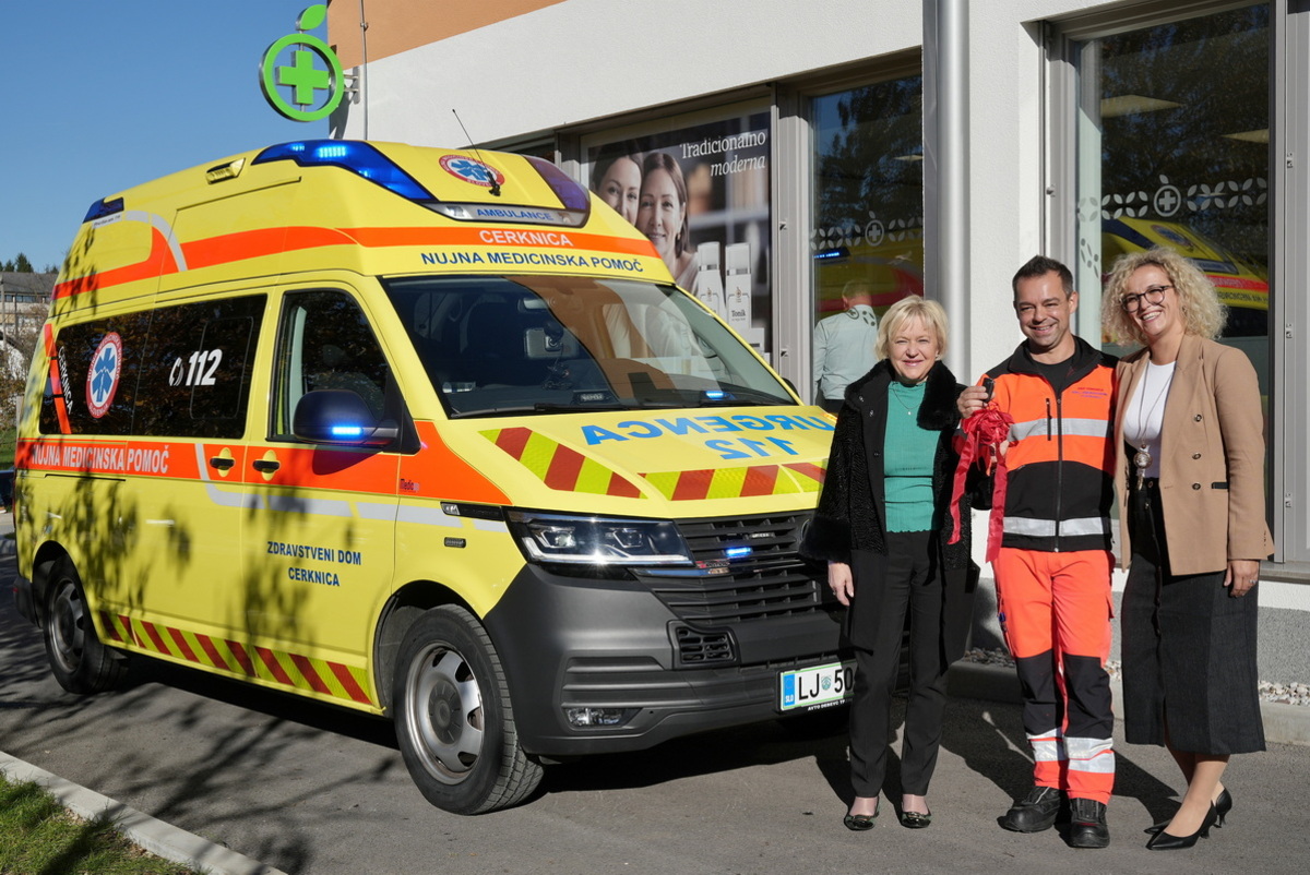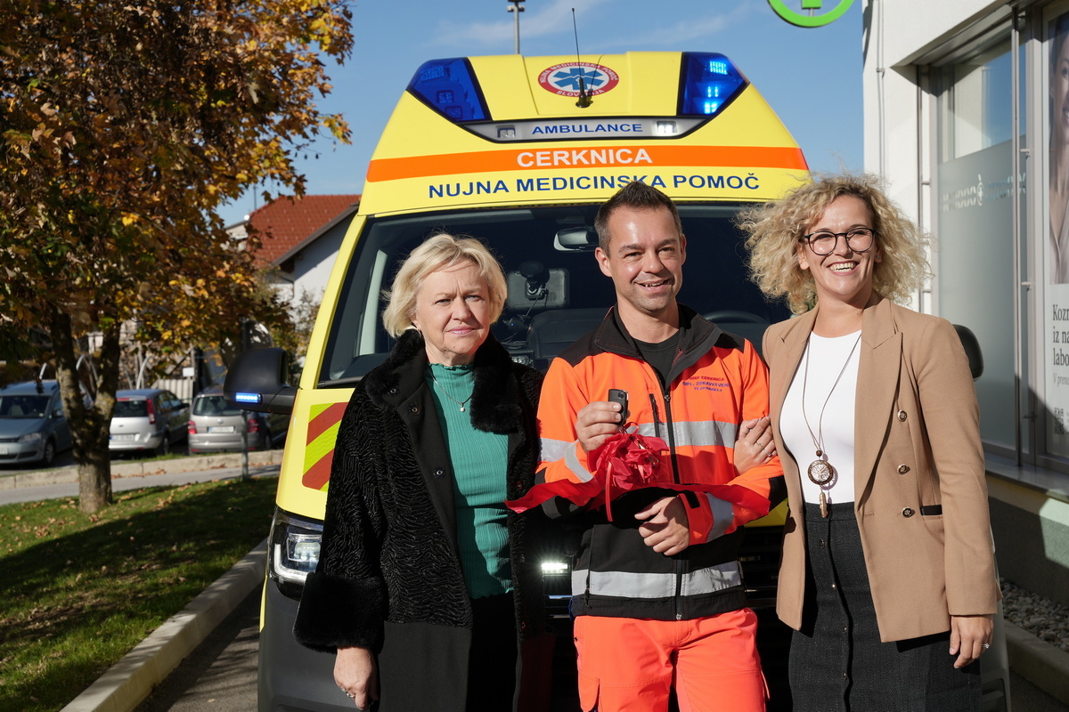 Ob tej priložnosti so župani občin ustanoviteljic Zdravstvenega doma Cerknica Marko Rupar, Matjaž Antončič in Jože Doles, direktorici zdravstvenega doma Olgi Doles predali tudi ključe novega reševalnega vozila.