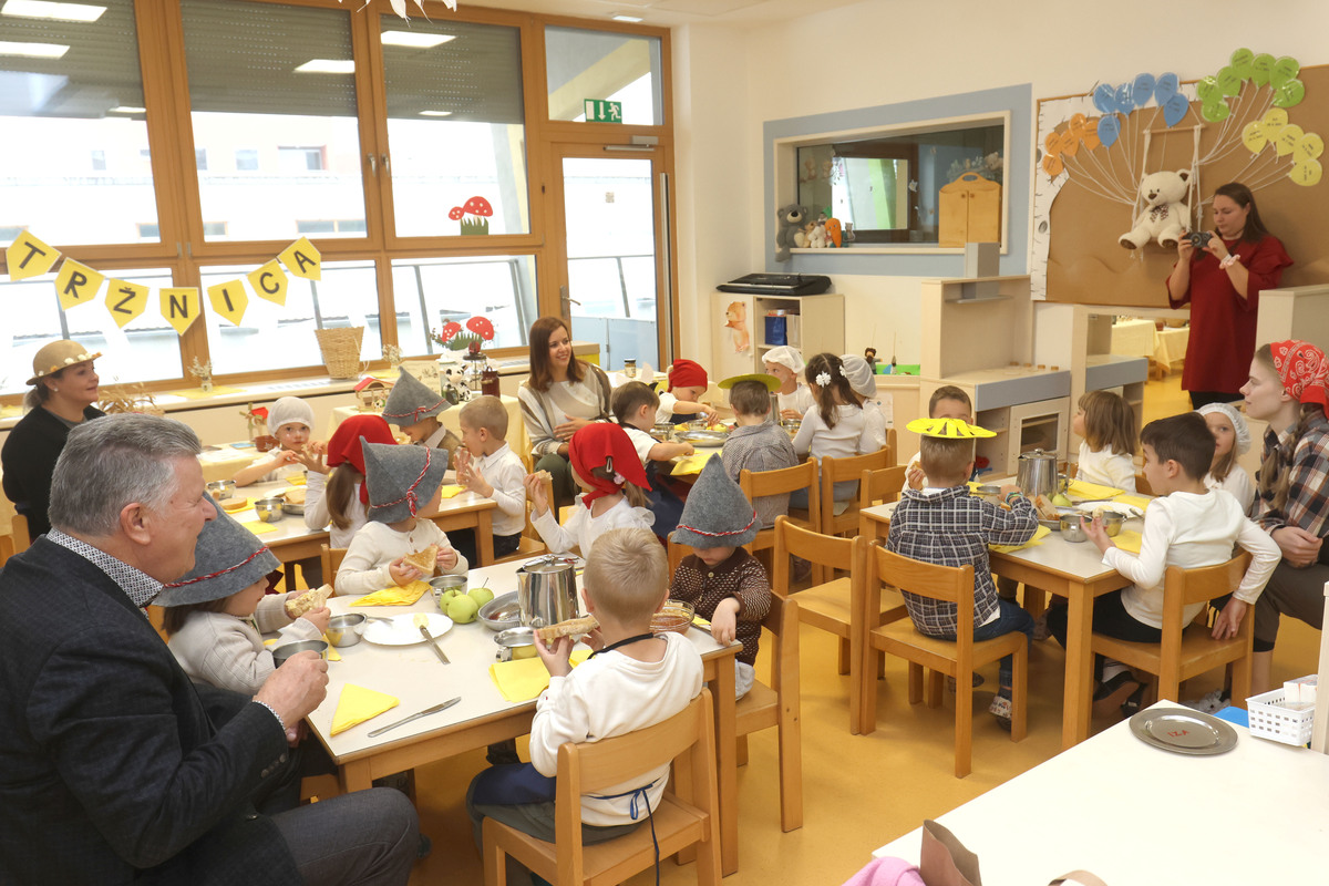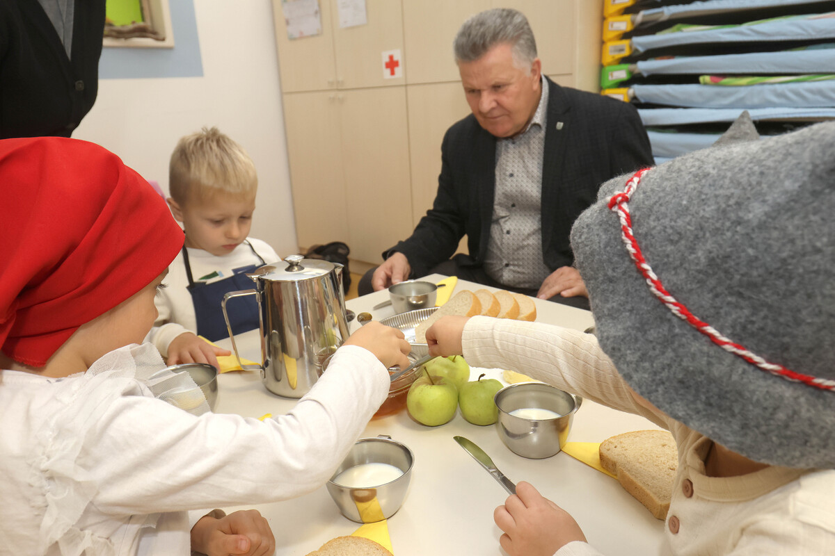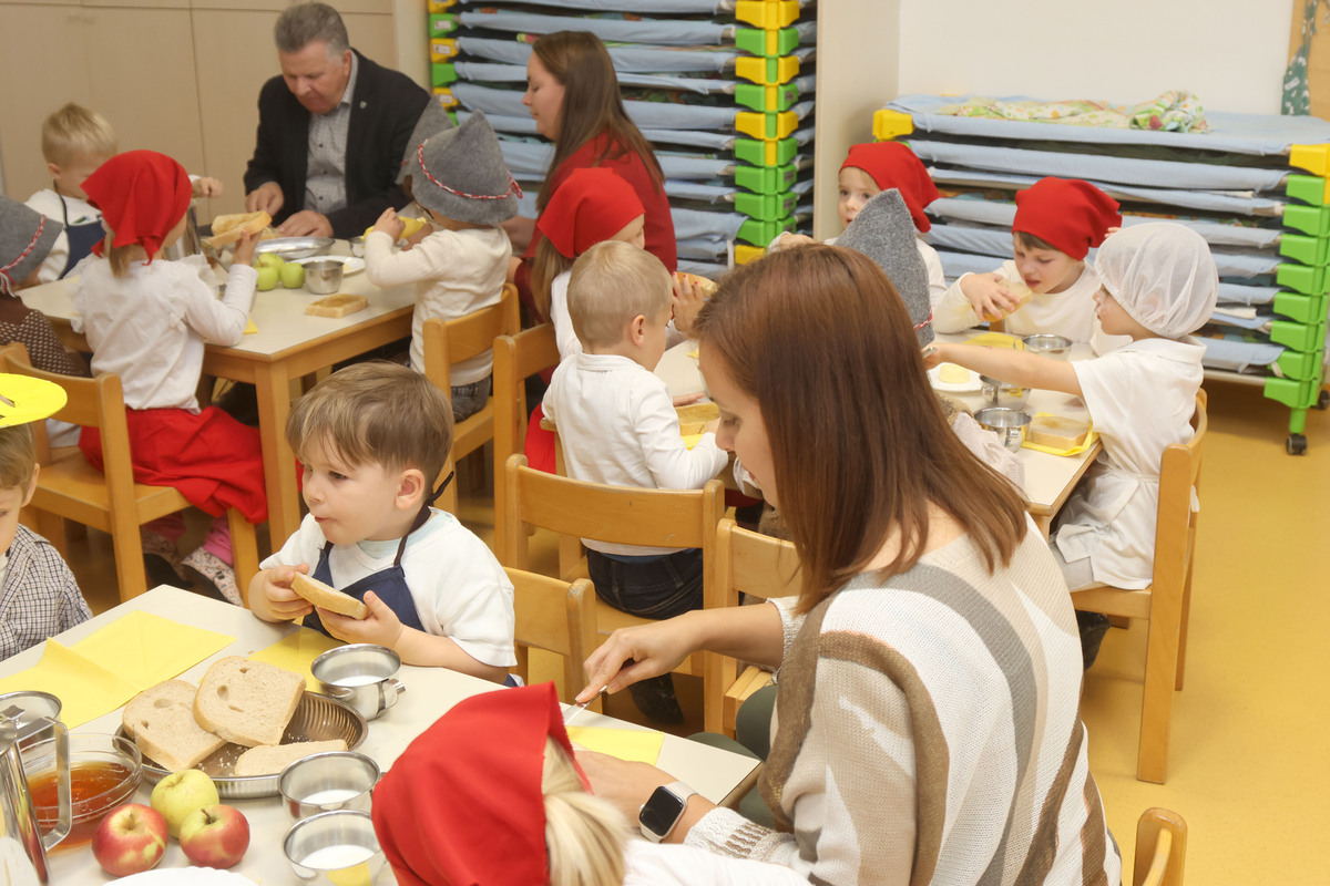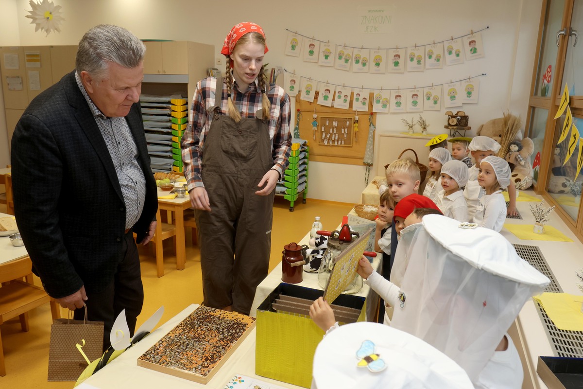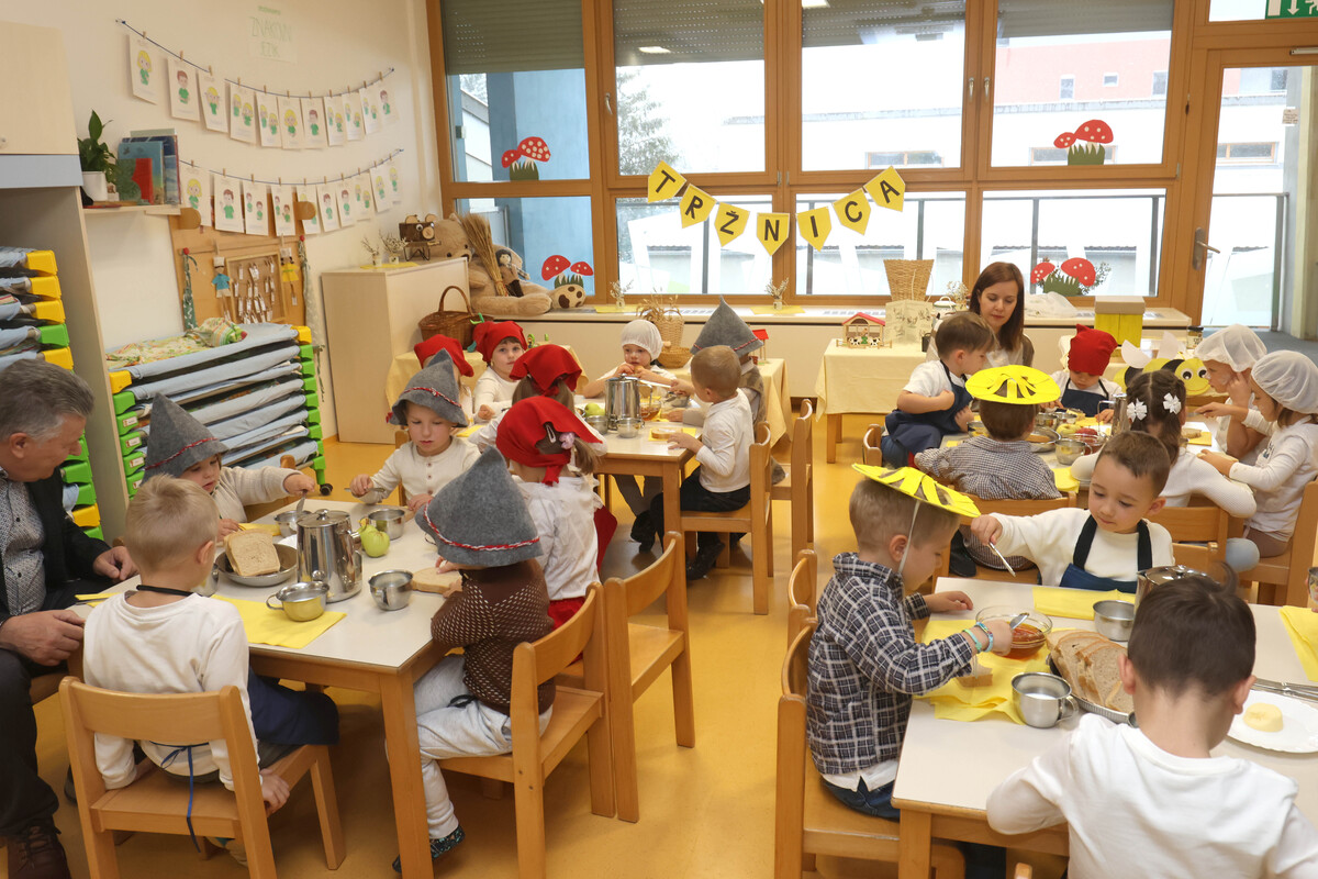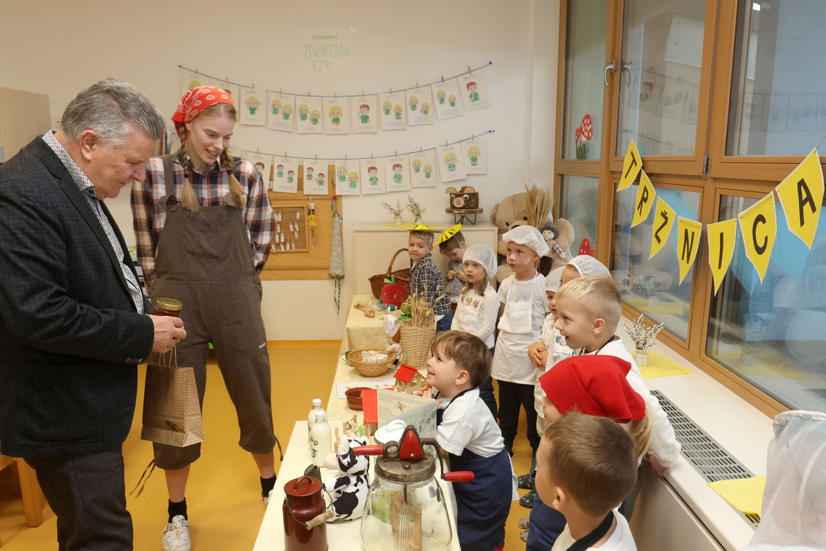 Tradicionalni slovenski zajtrk je župan Marko Rupar skupaj z ravnateljico Jasno Maček zajtrkoval pri otrocih iz skupine Medvedki Vrtca Martin Krpan Cerknica in bil presenečen nad programom in kuliso, ki so ju pripravili otroci in vzgojiteljici.
