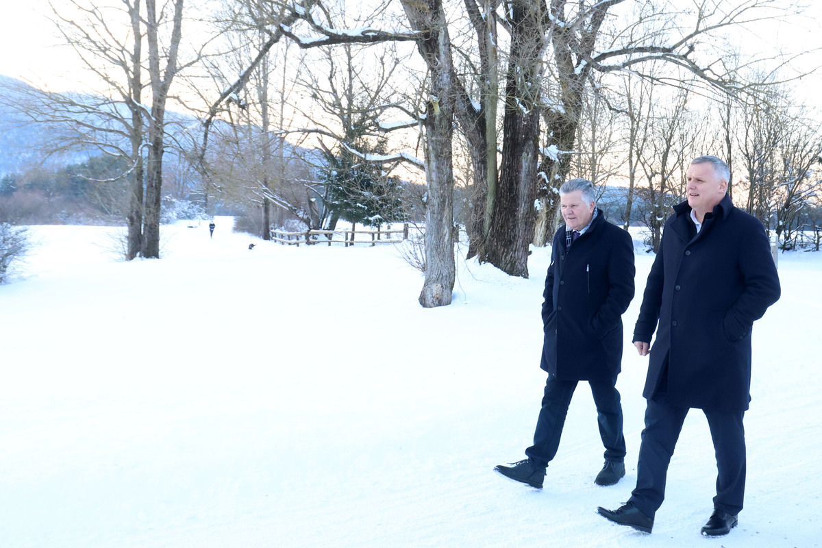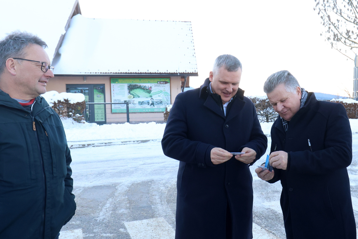 Župan Marko Rupar, podžupan Domen Petan in direktor Notranjskega parka Leon Kebe so na Cerkniškem jezeru gostili ministra za okolje, podnebje in energijo Bojana Kumra. Še prej pa se je cerkniški župan skupaj s kolegi župani primorsko-notranjske regije udeležil delovnega kosila s predsednikom Vlade RS dr. Robertom Golobom.