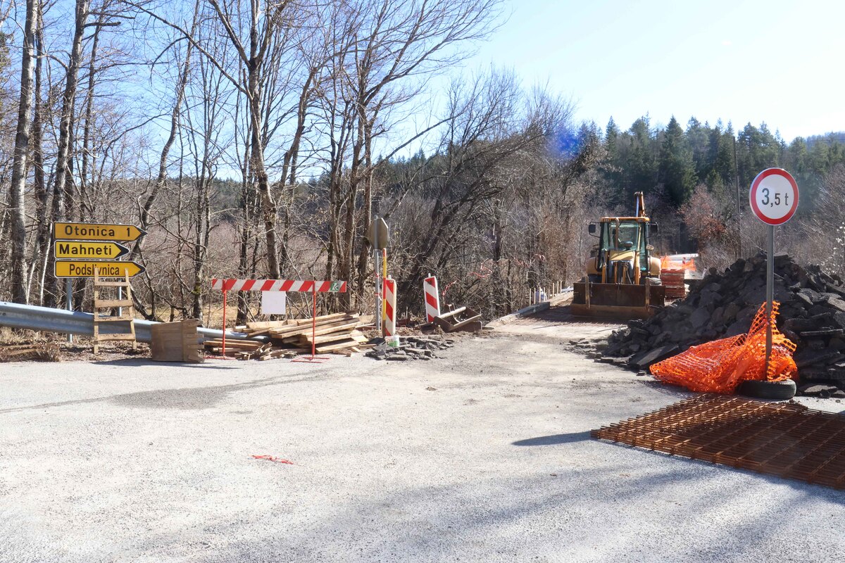 Občina Cerknica z izvajalcem del AS Sigra, d. o. o., obnavlja most na lokalni cesti, ki vodi do vasi Otonica, Mahneti in Podslivnica. Pogodba za obnovo je bila podpisana januarja, izvajalec pa bo dela zaključil v začetku aprila. Investicija obsega sanacijo opornikov, rekonstrukcijo nosilne konstrukcije, hidroizolacijo, izdelavo voziščne plasti in namestitev varnostne ograje. Vrednost del je 66.835 evrov.