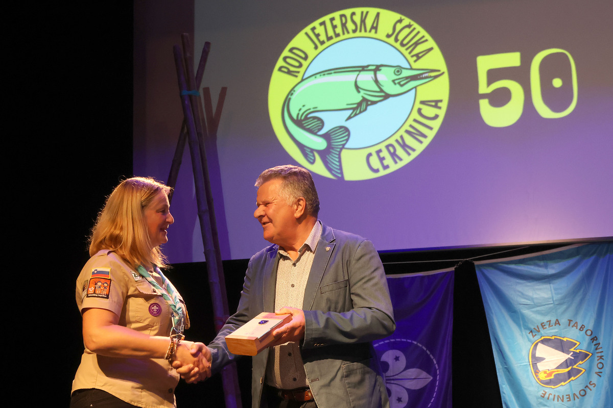 Rod Jezerska ščuka (RJŠ) Cerknica (takrat še odred) je bil ustanovljen pred petdesetimi leti, jeseni leta 1975. V pol stoletja zgodovine cerkniških tabornikov so vrednote skrbi za naravo, prijateljstva, pomoči povezale mnoge generacije, povezujejo pa jih tudi številne zgodbe in spomini. Nekaj izmed njih so podelili z občinstvom v Kulturnem domu Cerknica, v petek, 19. september 2025, ko so na slovesnosti praznovali 50-letnico obstoja. Ni manjkalo pogovorov s predstavniki različnih generacij tabornikov, zabavnih skečev in veselih pesmi, po prireditvi pa so se vsi taborniki, stari in mladi še malo podružili in se, kot se za 50. rojstni dan spodobi, posladkali z odlično torto. Na praznovanju v kulturnem domu se jim je pridružil tudi župan Marko Rupar, ki je predsednici RJŠ Vesni Dragolič podelil spominsko plaketo občine Cerknica. Župan je v nagovoru pohvalil delo cerkniških tabornikov pri vključevanju mladine, spodbujanju pozitivnega odnosa do okolja, ljudi in živali ter sonaravnega načina življenja.