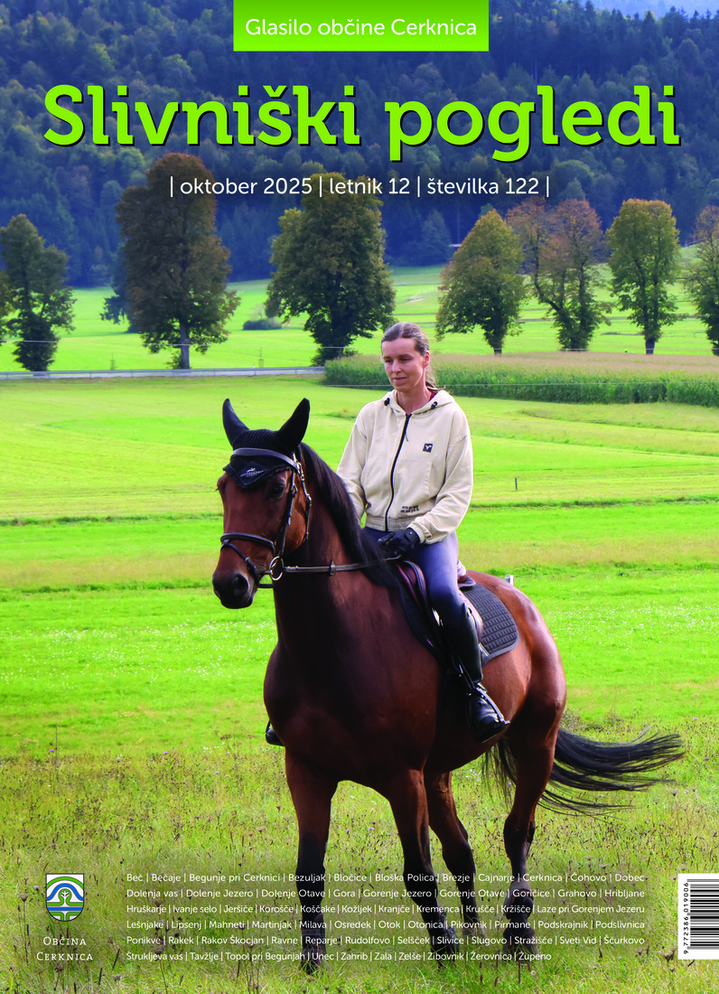 Oktober, dobrodošel! Dobrodošla tudi nova številka Slivniških pogledov za prijetno branje v hladnih in deževnih jesenskih dneh. Današnji dan, ko so vas v nabiralnikih razveselili Slivniški pogledi, pa ni takšen. Padavin naj bi bilo v prihodnosti vse manj, s tem pa naj bi se nam obetale težave s pitno vodo. O tem, kaj bo z vodooskrbo smo se poglobili v rubriki Aktualno. Vlažno in toplo vreme v preteklih mesecih pa je ustrezalo tudi mušicam, ki so med rejce zanesle bolezen modrikastega jezika. Na žalost so zdesetkale notranjske črede drobnic. Je pa vreme letos očitno ustrezalo čebelam, ki so panje rekordno napolnile. Čebelarji se lahko veselijo dobre letine, tisti iz Rakeka pa imajo še en razlog za veselje. Njihovo društvo namreč praznuje kar 120 let obstoja. Poleg čebelarjev so na Rakeku zelo aktivni tudi gasilci. Iz tamkajšnjega gasilskega društva izhaja tudi Klemen Purkart, ki je poveljnik Gasilske zveze Cerknici. Ob mesecu požarne varnosti je s Polono Otoničar Pajk delil svojo gasilsko pot. Vabljeni k branju! Tudi na spletni strani.