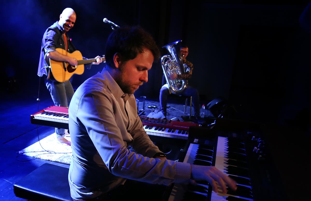 Kantavtor Rudi Bučar je v dvorani cerkniškega kulturnega doma že večkrat gostoval in tudi v petek, 25. marca, med nastopom ni skrival, da se v naših koncih odlično počuti. Družbo na odru sta mu delala Anže Vrabec (klavir, hammond) in Goran Krmac (tuba), ki pa ga s Cerknico povezuje dirigentska taktirka pri Big bandu Cerknica (BBC).