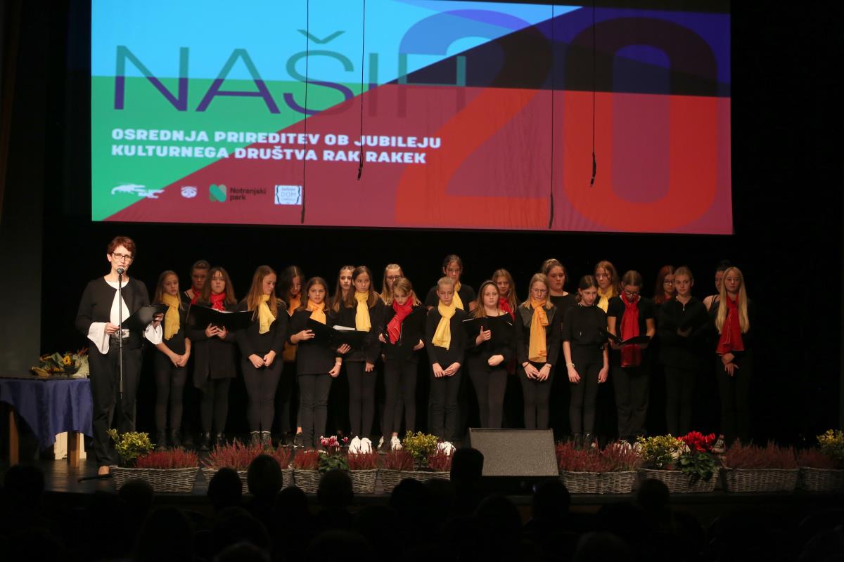 V soboto, 22. oktobra 2022, se je v Kulturnem domu Cerknica odvijala prireditev Naših 20, s katero so člani Kulturnega društva (KD) Rak Rakek proslavili 20 let obstoja. Na prireditvi so v pevski, plesni in govorni obliki predstavili bogato delovanje vseh osmih sekcij, obogatili pa smo jo z arhivskimi posnetki. Dogodka so se udeležili tudi župan občine Cerknica Marko Rupar, vodja območne izpostave Javnega sklada za kulturne dejavnosti (JSKD) Jožica Mlinar ter prvi predsednik KD Aleš Štefančič. V programu so sodelovali pevci Mešanega pevskega zbora Rak, Vokalna skupina Cluster, Folklorna skupina KD Rak Rakek ter gostje – mladinski pevski zbor Osnovne šole »Jožeta Krajca« Rakek. Društvo je za svoje delovanje prejelo občinsko plaketo ter priznanje JSKD. Dolgoletna predsednica Danica Štefančič, ki se je ob tej priložnosti poslovila od funkcije predsednice, pa je prejela priznanje JSKD za delovanje v kulturi. Zelo uspešno jo je opravljala celih 16 let.